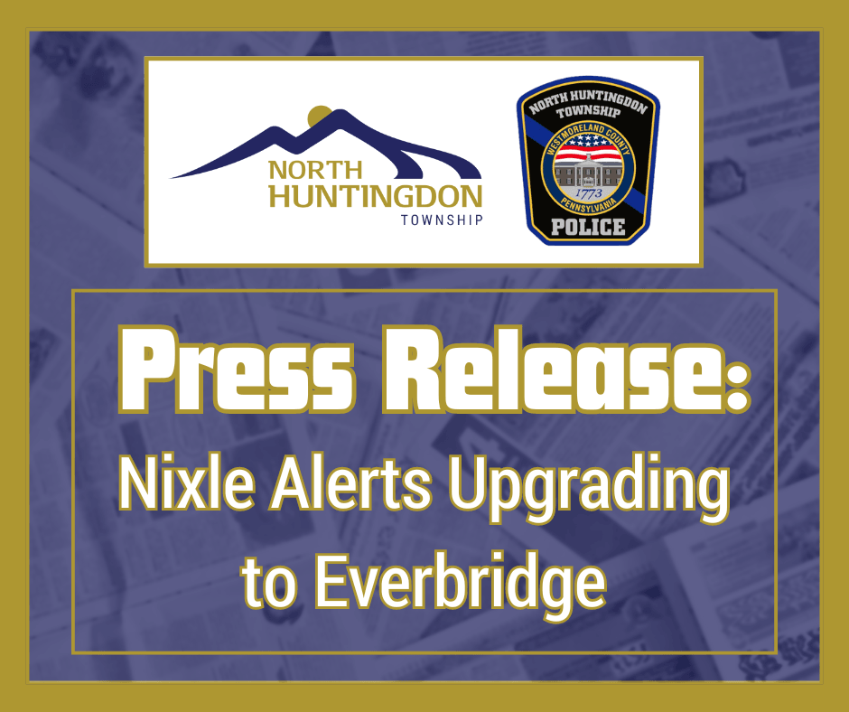 North Huntingdon Township and its Police Department are upgrading from Nixle text and email alerts to a more robust alert notification service known as Everbridge. The upcoming transition is scheduled for July 15th and will include quite a few noticeable changes for residents such as being able to update contact information, subscribe to different non-emergency alerts, and receive push notifications through the Everbridge mobile app.